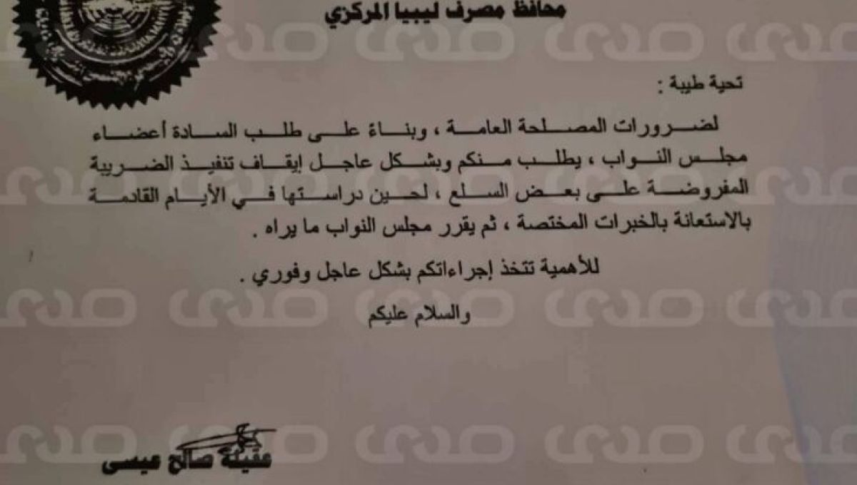 المركزي، يطلب فيها إيقاف تنفيذ الضريبة على السلع والكماليات، وذلك إلى حين دراستها من قبل المجلس