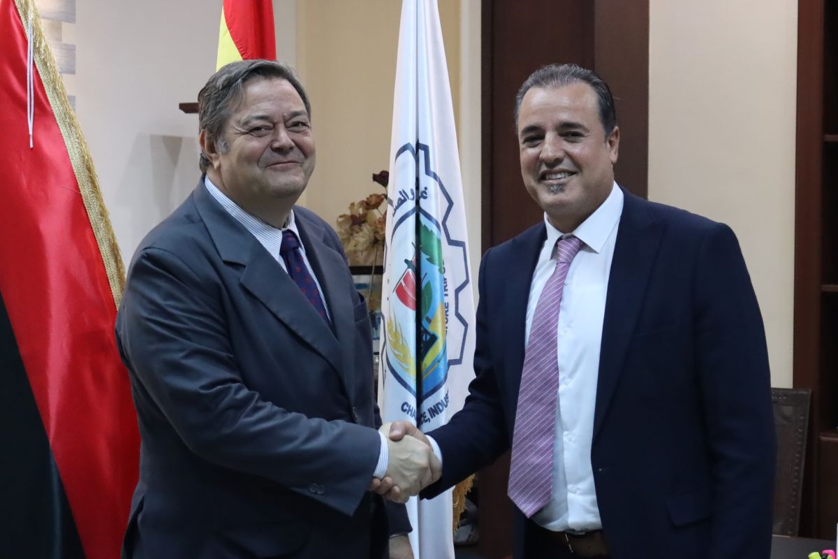 Chairman of Administrative Committee of Tripoli Chamber of Commerce, Industry and Agriculture, Anwar Abu Setta, met with the Ambassador of Spain to Libya, Javier Garcia, at the Chamber’s headquarters on Thursday, within the framework of making the necessary arrangements for the visit of the Chamber’s delegation to the Spanish city of Barcelona.